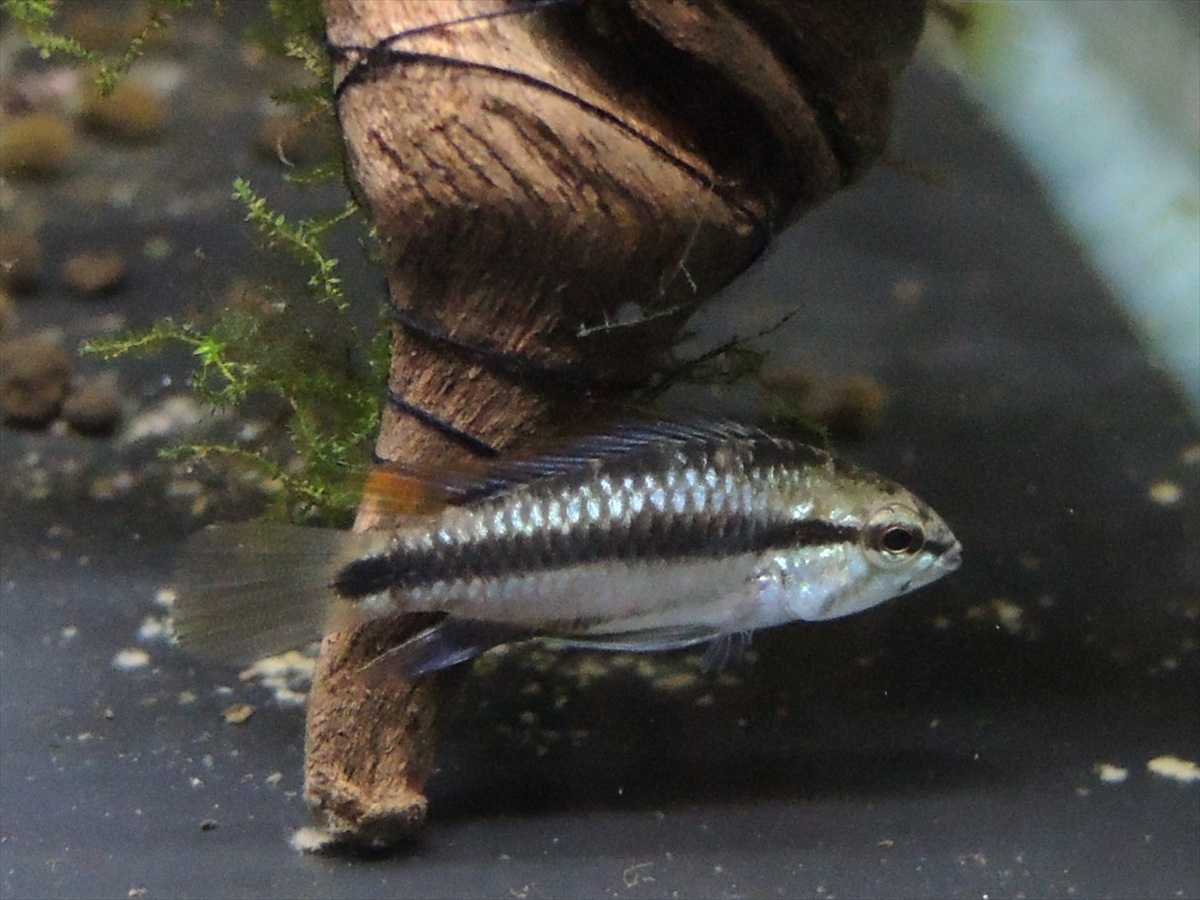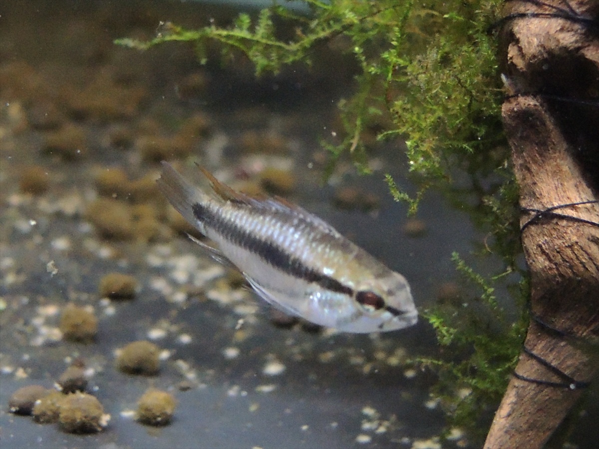 - アピストグラマ・トリファスキアータはメタリックブルーの体色がとても美しいアピストグラマです。アピストグラマ飼育入門種。濾過の効いた水槽であれば飼育は難しくありません。流木や産卵窟の天井に産卵しメスが子育てします。