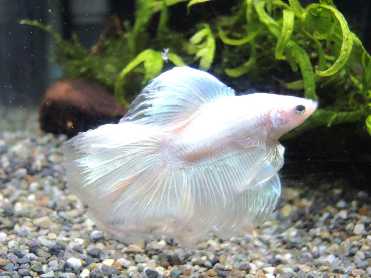 Fbt2105211 ベタ ハーフムーン プラチナホワイト ダブルテール 4,400円 売切れ この商品に関するお問い合わせ ・原種の生息地:タイ王国 改良品種になります。 ・最大サイズ: 7cmくらい ・pH: 弱酸性~中性 ・学名: Betta splendens var. 闘魚の名の通りオス同士或いはオスがメスを激しく攻撃し傷つけますので基本的に単独飼育となります。 オスが水面に泡巣を作り卵を孵化させます。成熟したオスとメスが揃えば繁殖も可能です。