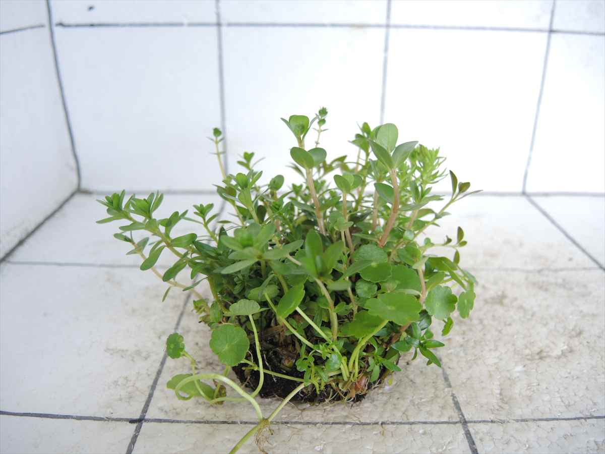 「佗び草」には一般的な水草にはないメリットがたくさんあります。最大の特長は取り扱いが簡単なこと。水草を植える手間も必要なく底床に置くだけです。植栽時に痛めやすい水草の根にダメージを与えることがないため、新芽の展開も早く失敗がありません。さらに「佗び草」は水陸の両方で楽しめ、ガラスの器に置いて楽しむ方法から本格的な水草レイアウトの制作まで幅広いニーズに応えます。