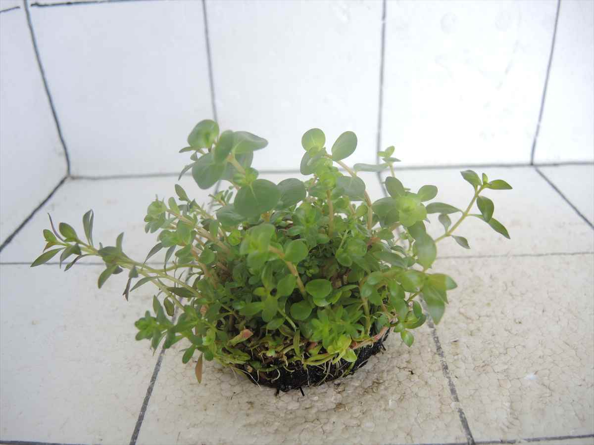 「佗び草」には一般的な水草にはないメリットがたくさんあります。最大の特長は取り扱いが簡単なこと。水草を植える手間も必要なく底床に置くだけです。植栽時に痛めやすい水草の根にダメージを与えることがないため、新芽の展開も早く失敗がありません。さらに「佗び草」は水陸の両方で楽しめ、ガラスの器に置いて楽しむ方法から本格的な水草レイアウトの制作まで幅広いニーズに応えます。