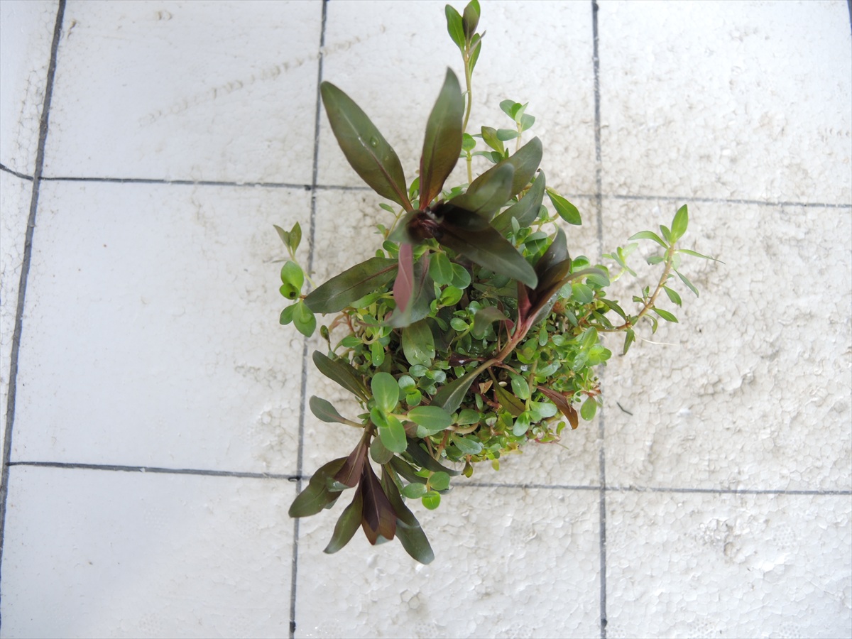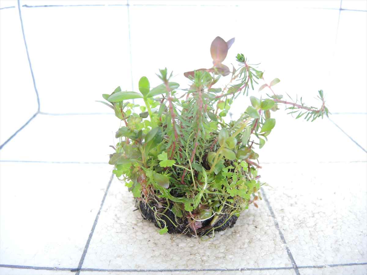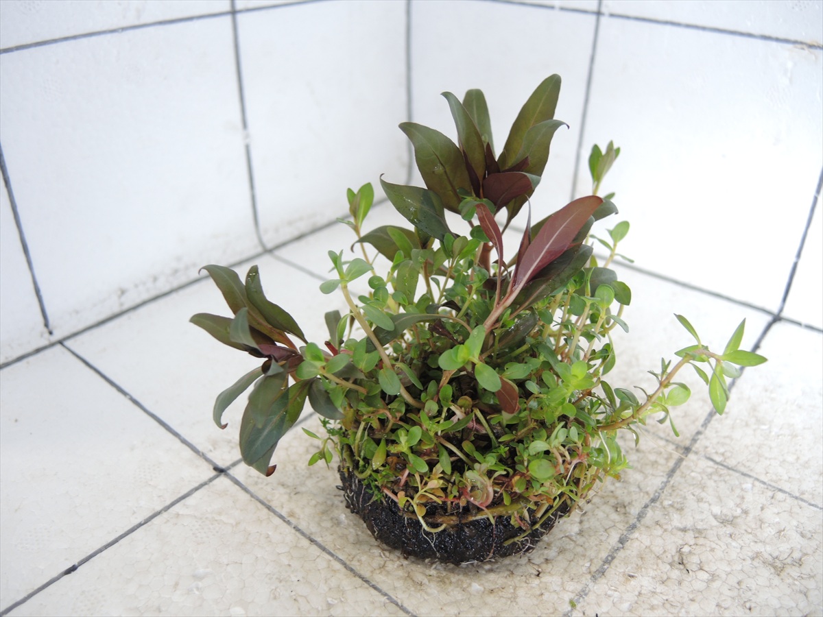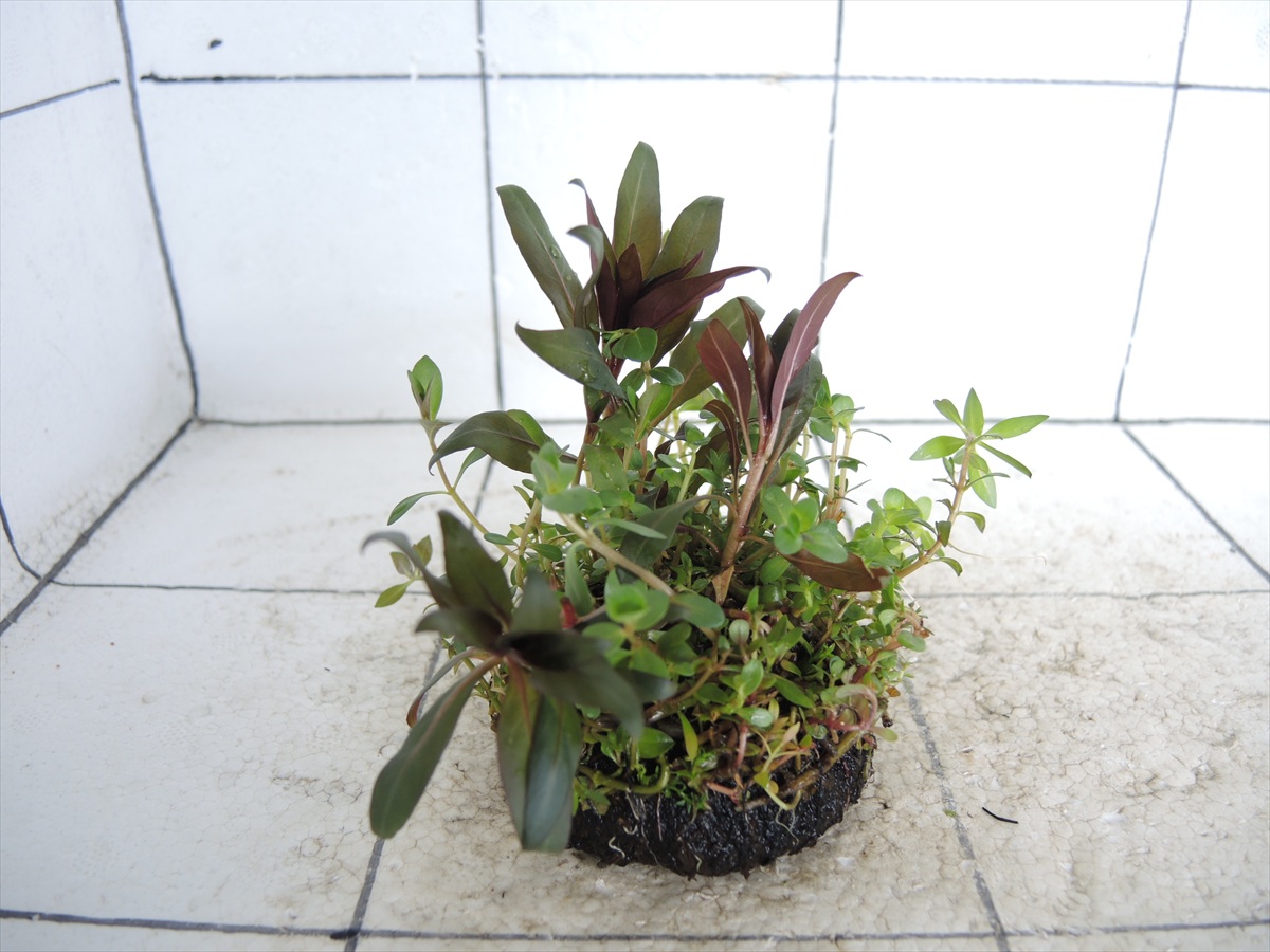 「佗び草」には一般的な水草にはないメリットがたくさんあります。最大の特長は取り扱いが簡単なこと。水草を植える手間も必要なく底床に置くだけです。植栽時に痛めやすい水草の根にダメージを与えることがないため、新芽の展開も早く失敗がありません。さらに「佗び草」は水陸の両方で楽しめ、ガラスの器に置いて楽しむ方法から本格的な水草レイアウトの制作まで幅広いニーズに応えます。