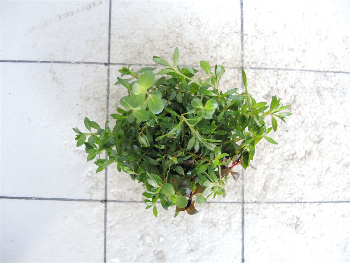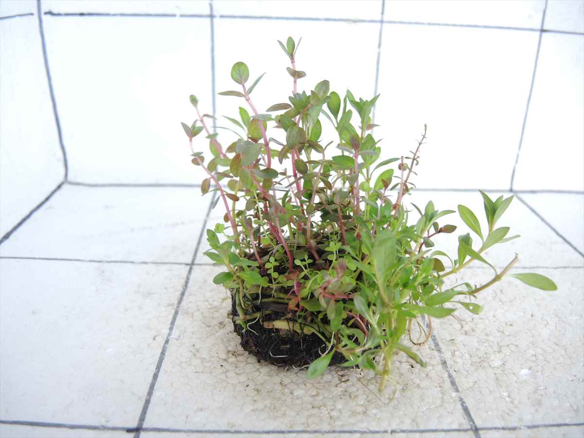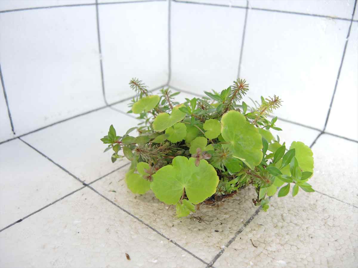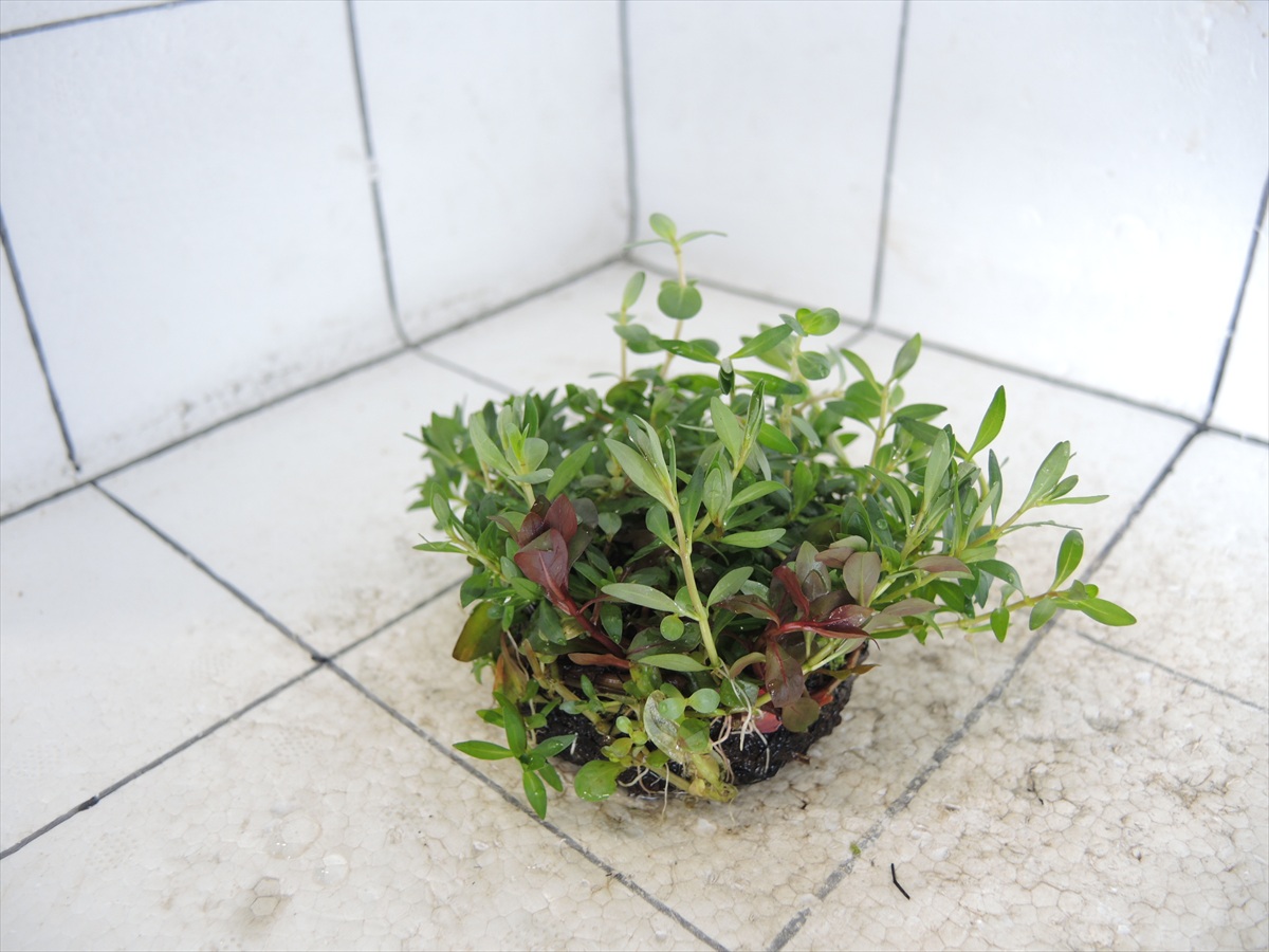 「佗び草」には一般的な水草にはないメリットがたくさんあります。最大の特長は取り扱いが簡単なこと。水草を植える手間も必要なく底床に置くだけです。植栽時に痛めやすい水草の根にダメージを与えることがないため、新芽の展開も早く失敗がありません。さらに「佗び草」は水陸の両方で楽しめ、ガラスの器に置いて楽しむ方法から本格的な水草レイアウトの制作まで幅広いニーズに応えます。