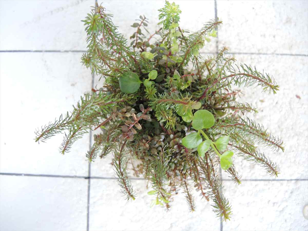 「佗び草」には一般的な水草にはないメリットがたくさんあります。最大の特長は取り扱いが簡単なこと。水草を植える手間も必要なく底床に置くだけです。植栽時に痛めやすい水草の根にダメージを与えることがないため、新芽の展開も早く失敗がありません。さらに「佗び草」は水陸の両方で楽しめ、ガラスの器に置いて楽しむ方法から本格的な水草レイアウトの制作まで幅広いニーズに応えます。