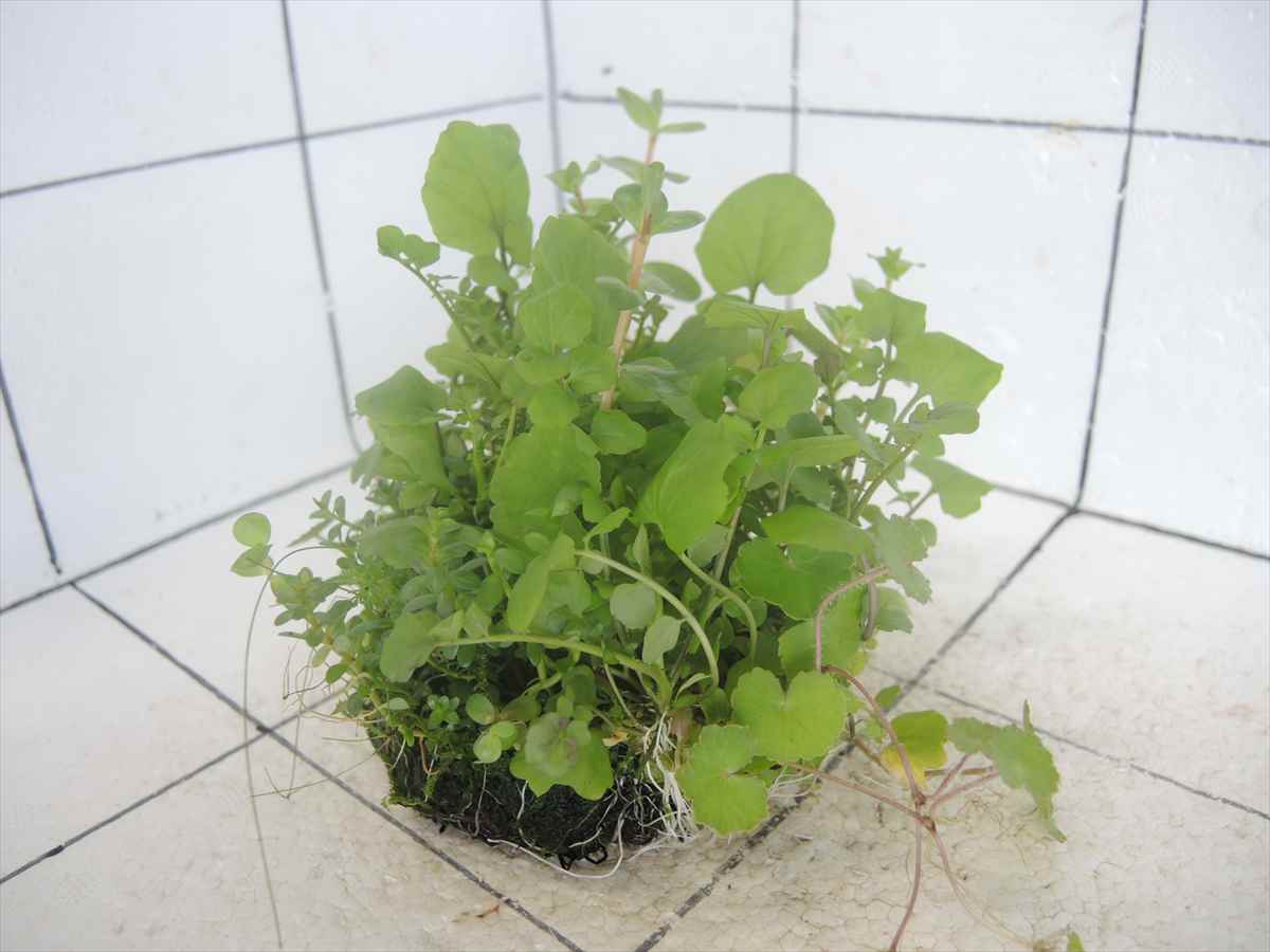「佗び草」には一般的な水草にはないメリットがたくさんあります。最大の特長は取り扱いが簡単なこと。水草を植える手間も必要なく底床に置くだけです。植栽時に痛めやすい水草の根にダメージを与えることがないため、新芽の展開も早く失敗がありません。さらに「佗び草」は水陸の両方で楽しめ、ガラスの器に置いて楽しむ方法から本格的な水草レイアウトの制作まで幅広いニーズに応えます。
