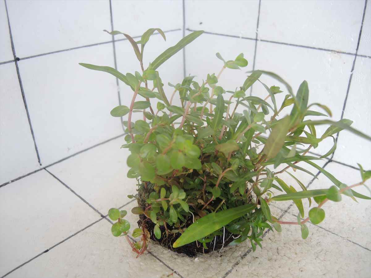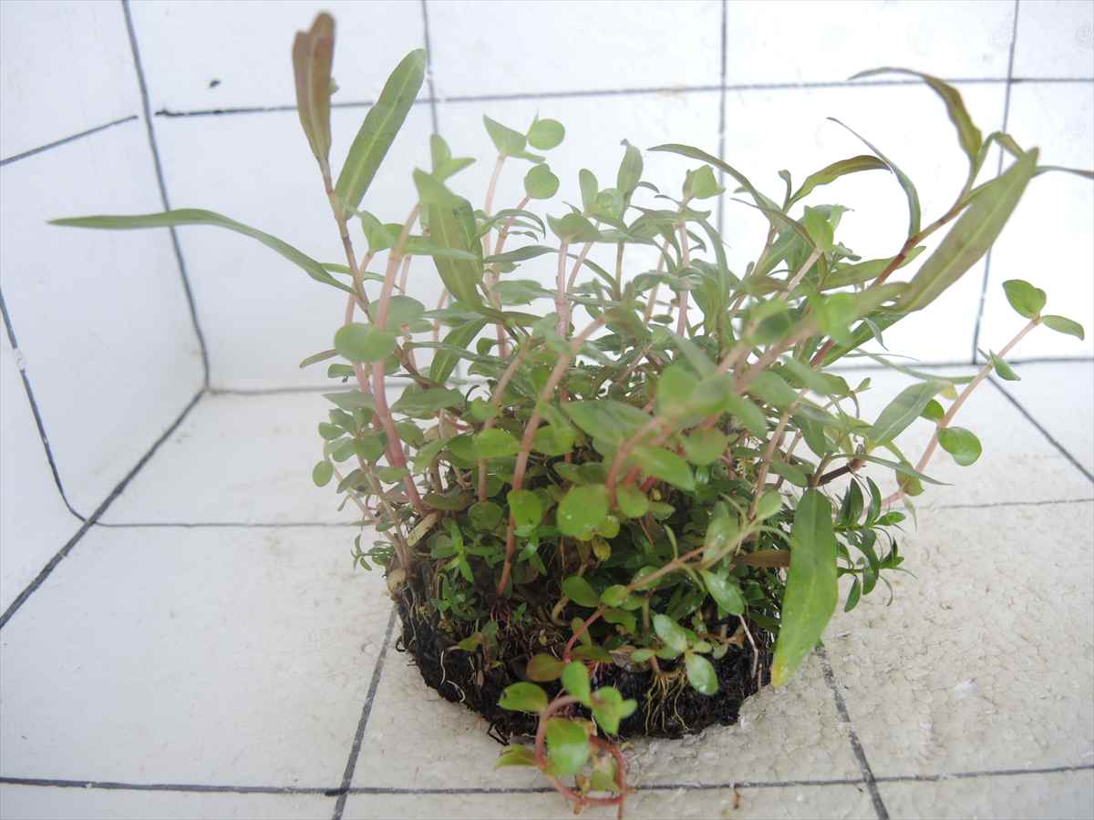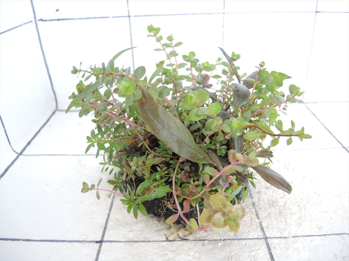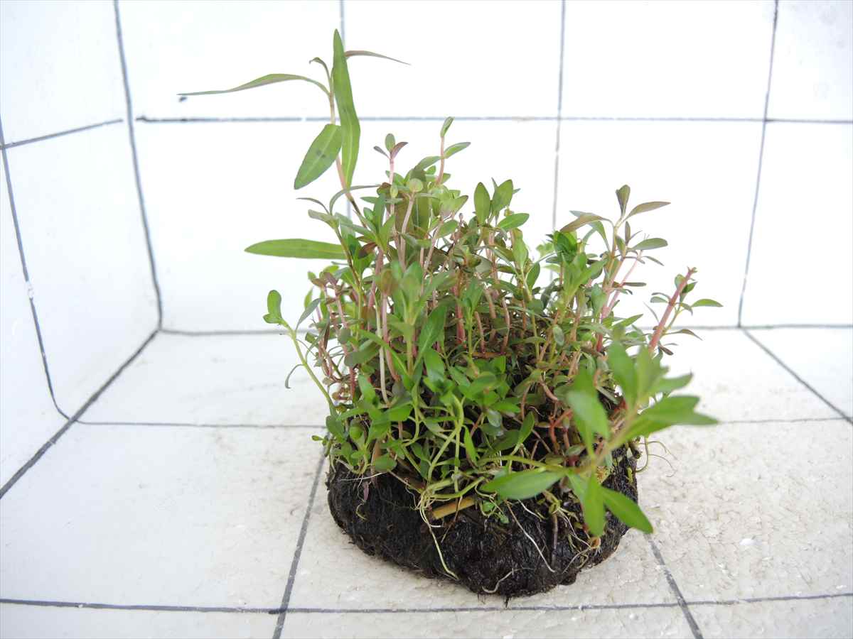 「佗び草」には一般的な水草にはないメリットがたくさんあります。最大の特長は取り扱いが簡単なこと。水草を植える手間も必要なく底床に置くだけです。植栽時に痛めやすい水草の根にダメージを与えることがないため、新芽の展開も早く失敗がありません。さらに「佗び草」は水陸の両方で楽しめ、ガラスの器に置いて楽しむ方法から本格的な水草レイアウトの制作まで幅広いニーズに応えます。