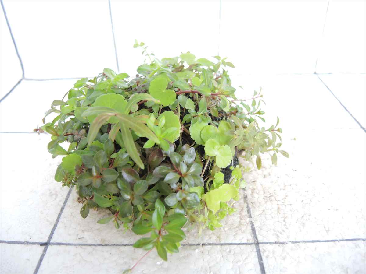 「佗び草」には一般的な水草にはないメリットがたくさんあります。最大の特長は取り扱いが簡単なこと。水草を植える手間も必要なく底床に置くだけです。植栽時に痛めやすい水草の根にダメージを与えることがないため、新芽の展開も早く失敗がありません。さらに「佗び草」は水陸の両方で楽しめ、ガラスの器に置いて楽しむ方法から本格的な水草レイアウトの制作まで幅広いニーズに応えます。