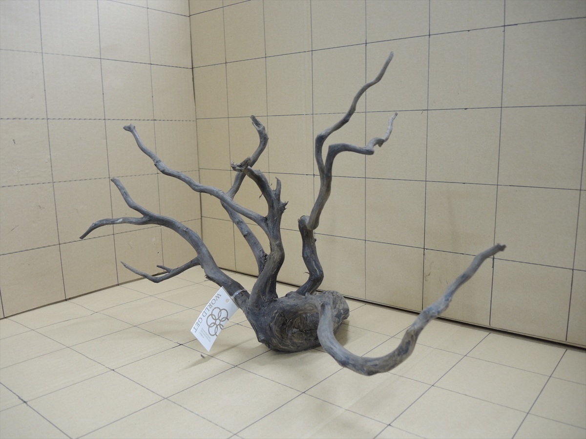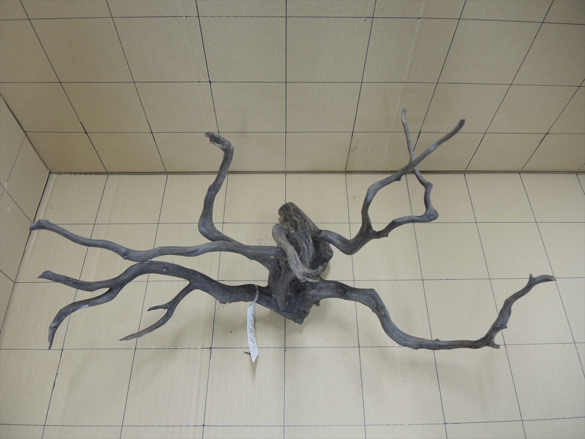画像の1マスは10cmです。沈むまで3週間くらいかかります。 Rmr8002 黒枝流木8002 LLサイズ 5,500円 在庫:1 個数:1 この商品に関するお問い合わせ 「黒枝流木 ブラックブランチウッド」は多分岐した形状が魅力で単に置くだけで絵になる流木です。枝先には人工的な切り口が無いので自然観を損ねません。 乾燥しているので沈むまで3週間くらいかかります。重しをして水槽に沈めて置いて下さい。