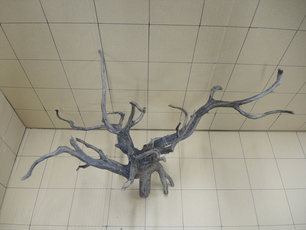 画像の1マスは10cmです。沈むまで3週間くらいかかります。 Rmr8003 黒枝流木8003 LLサイズ 5,500円 在庫:1 個数:1 この商品に関するお問い合わせ 「黒枝流木 ブラックブランチウッド」は多分岐した形状が魅力で単に置くだけで絵になる流木です。枝先には人工的な切り口が無いので自然観を損ねません。 乾燥しているので沈むまで3週間くらいかかります。重しをして水槽に沈めて置いて下さい。