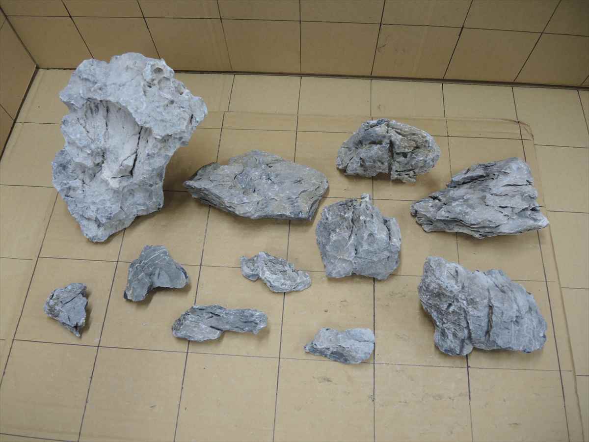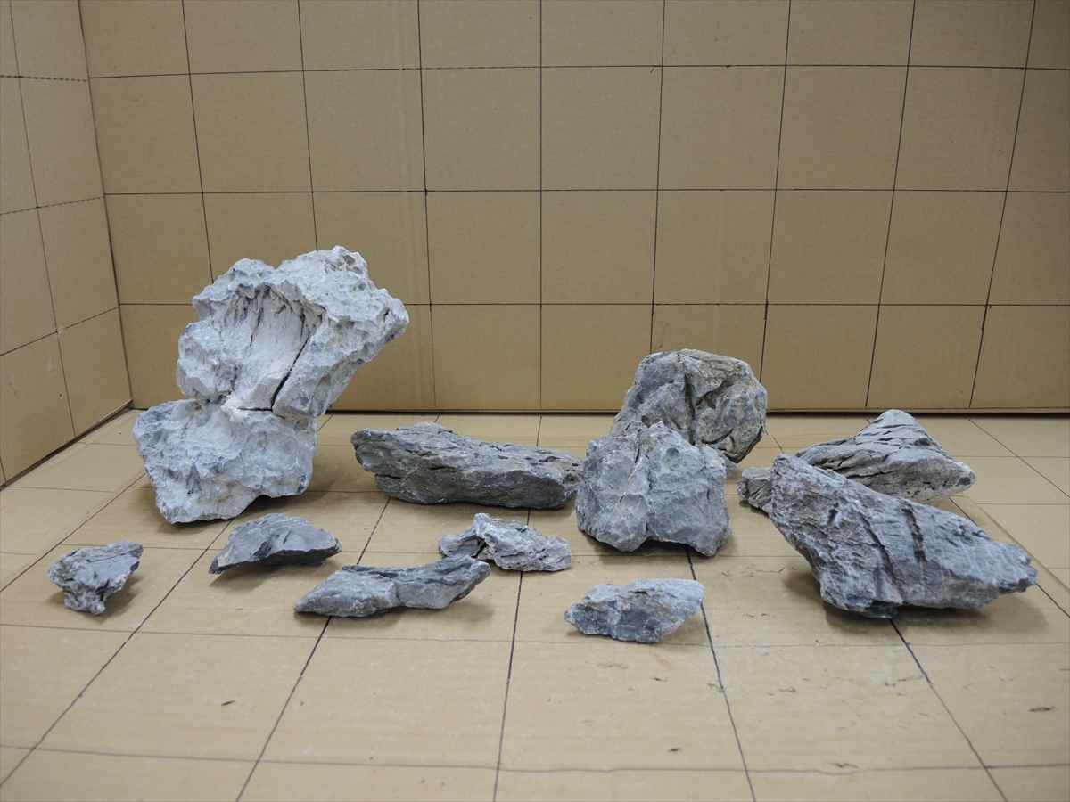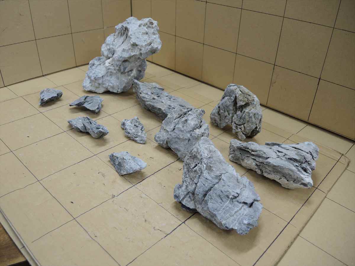 画像の1マスは10cmです。 Ssk0003 青華石レイアウトセット 0003 4,500円 在庫:1 個数:1 この商品に関するお問い合わせ 青華石11個セットの箱売り。 1箱7Kgくらい。 多少硬度が上がるのでpHも少し上がります。 青みがかった灰色をした独特の雰囲気をもつ石です。 表面の凹凸や色合いが自然な雰囲気を演出し、水草水槽のレイアウトなどにおすすめです。 セット内容:大 1個、中 5個、小 5個 合計11個